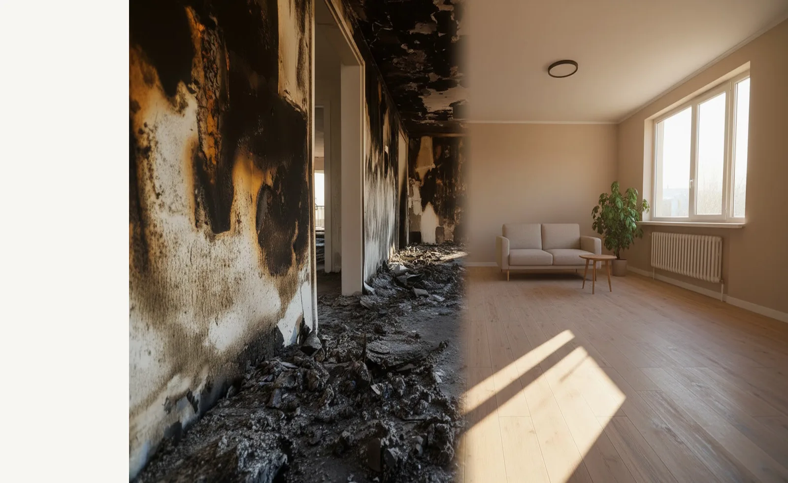Unser Team entfernt Ruß und Brandgeruch fachgerecht. Das schützt die Bausubstanz und ermöglicht eine rasche Wiederherstellung.